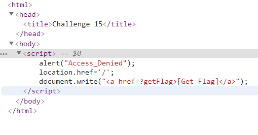 들어가면 바로 Access Denied란 알람이 뜨고 꺼지길래, 후다닥 개발자 도구로 소스코드를 보았다.