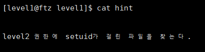 level2 소유자에 setuid가 걸린 파일을 찾는 것이다.