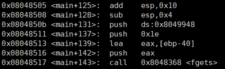 >> fgets(배열주소, 0x1e(30): 사이즈, STDIN)