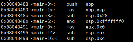 - <main+0> main() 진입 전 EBP 주소를 스택에 저장