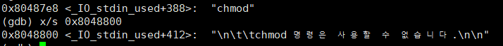 - 입력한 명령어가 chmod인지 비교해서 같으면 main+251로 분기, 같지 않다면 chmod 명령을 사용할 수 없다는 error 메시지를 출력하고 exit(0) 함수를 통해 실행 종료시킨다.