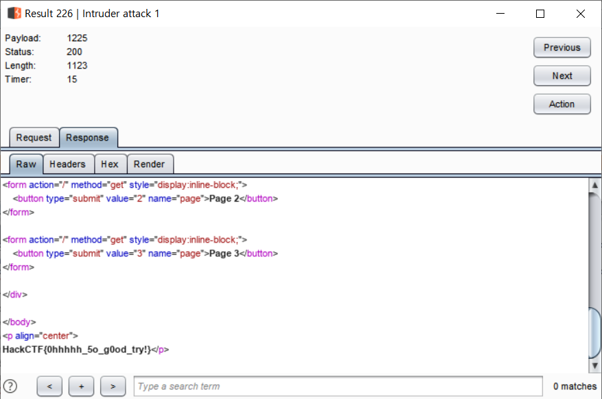 URL 파라미터 page에 버튼에 없는 0 값을 넣어보니, 위와 같이 문자열이 출력되었다.