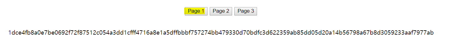page 1, 2, 3을 누르면 다음과 같이 인코딩 된 것 같은 문자열이 나온다.