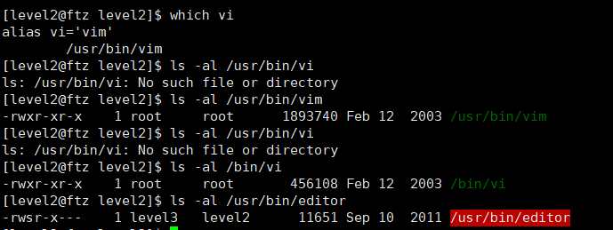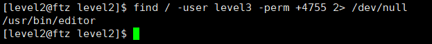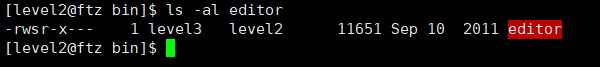 : 실행되면 /usr/bin/editor 파일은 일시적인 level3의 EUID 권한 갖음