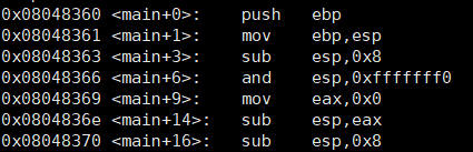 : <main+0> main() 진입 전 EBP 주소 저장