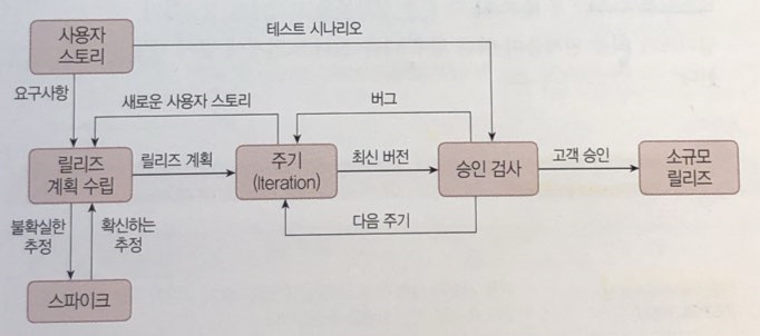 : 수시로 발생하는 고객의 요구사항에 유연히 대응하기 위해 고객의 참여와 개발 과정의 반복을 극대화하여 개발 생산성을 향상시키는 방법