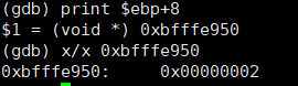 위에서 bp를 걸고 인자값을 주어 r로 실행시켰으니, $ebp+8의 값을 확인해 보면 2가 제대로 들어갔음을 확인할 수 있다.