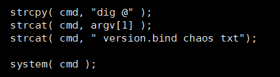 >> strcpy(cmd, "dig @")
