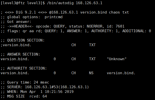>> autodig 명령: 입력받은 문자열에 해당하는 DNS 서버에서 운영중인 BIND 프로그램의 버전을 확인하는 명령을 실행