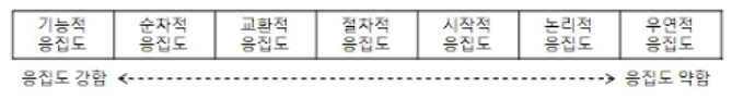 : 정보 은닉 개념을 확장한 것. 명령어나 호출문 등 모듈 내부 요소들의 서로 관련되어 있는 강도
