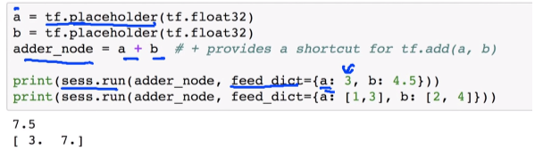 - 값을 미리 place hold하려면 feed_dict로 값 설정