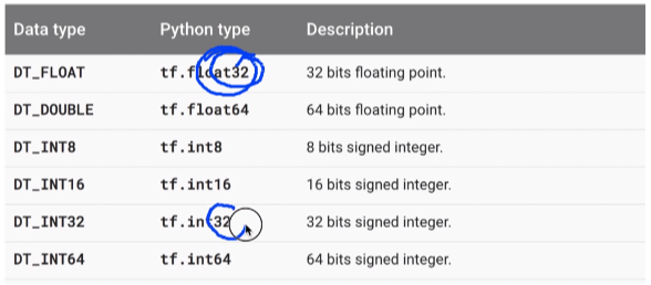 : 대부분 float32, int32 사용