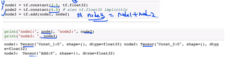 node1 등을 출력하면 이것이 'Tensor'임을 알려주는 정도로만 출력된다. 값은 출력되지 않음.