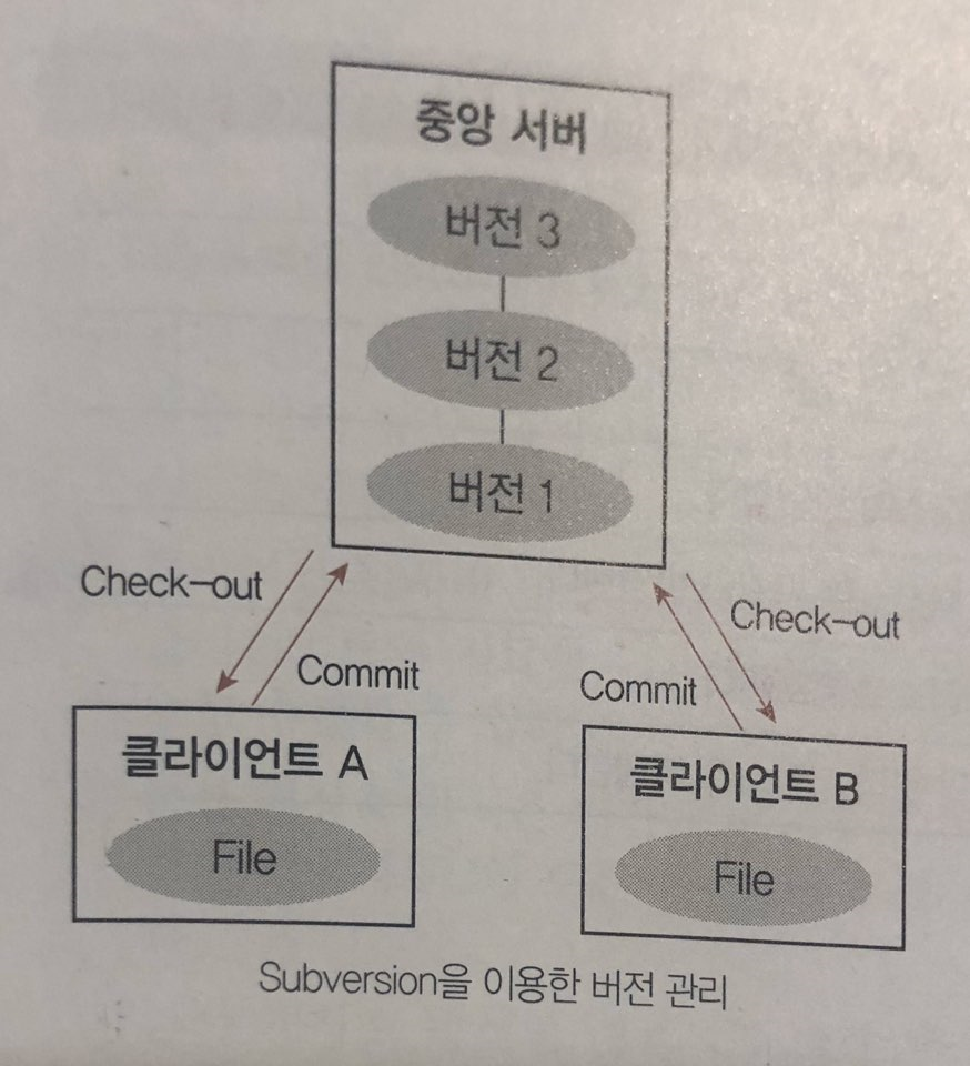 1) 서버의 자료를 개발자별로 자신의 PC(클라이언트)로 복사 > 변경 내용을 서버에 반영