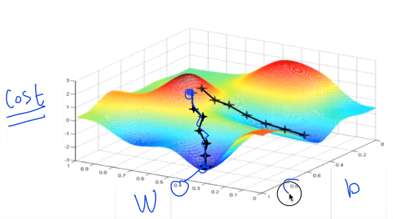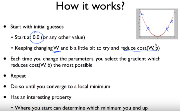 - For a given cost fun, cost (W,b), it will find W, b to minimize cost