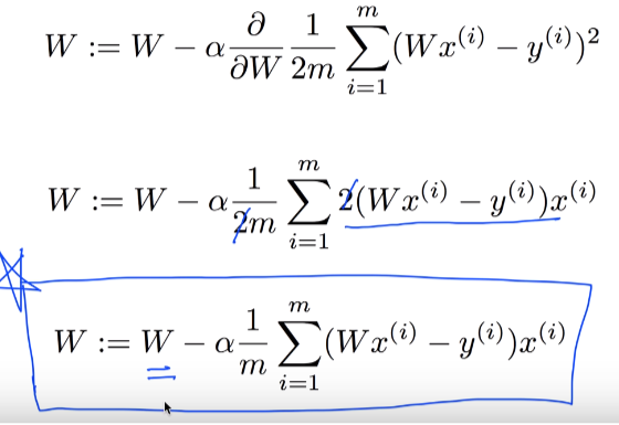 ** cost함수를 미분