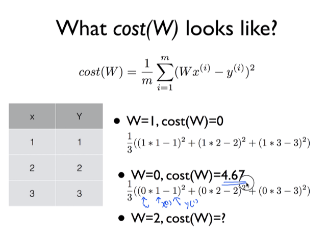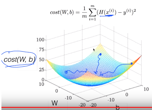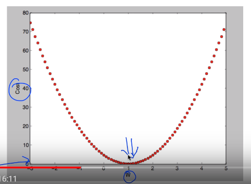 여러 번 실행시키면 W값이 변할 것임. 변화되면 그 값이 바로 COST를 Minimize하는 값.