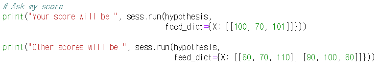 - 학습 후에 자신의 점수를 넣어서 예측해볼 수 있음.