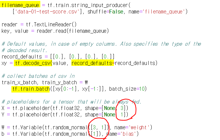 : tf.train.batch(X_DATA, Y_DATA, batch_size=한번에 몇 개 가져올 것인지)