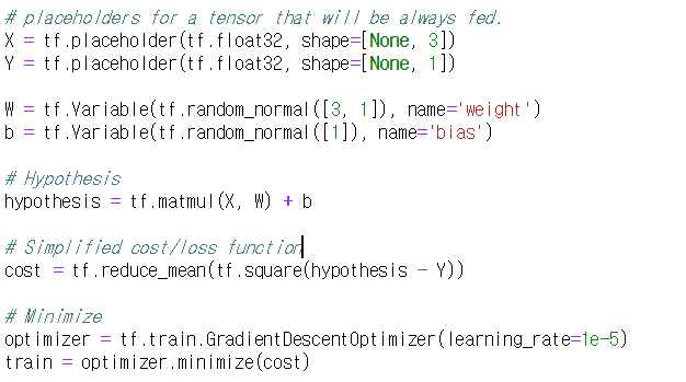 | [모두의 딥러닝] lab 04-1. multi-variable linear regression을 TensorFlow에서 구현하기 (0) | 2019.04.05 |
