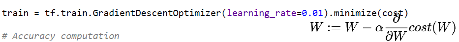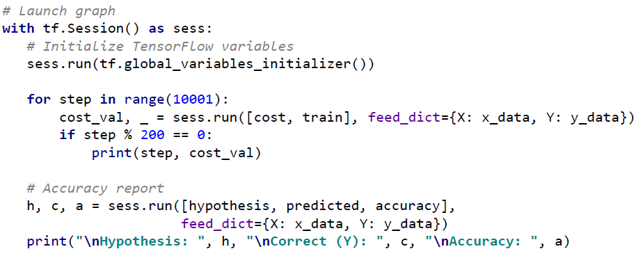 x_data, y_data의 값을 던져주며 train이라는 노드를 실행시킨다.