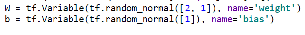 두 개의 x feature이 들어오고, 나가는 값은 한 개다. --> variable 값으로 [2, 1] 설정