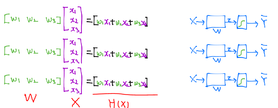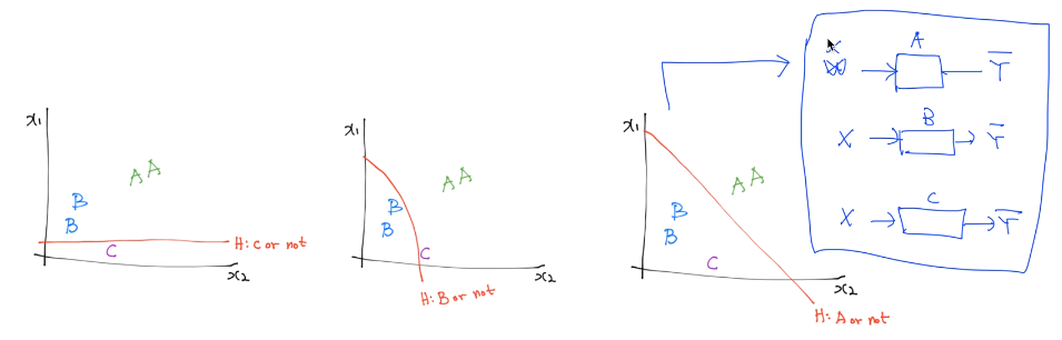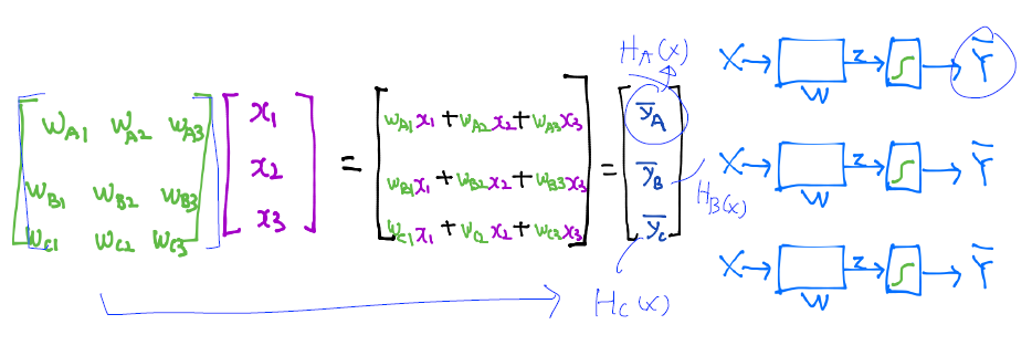 Ha(x), Hb(x), Hc(x) 각각에 sigmoid를 적용하여도 되지만 이것을 효율적으로 간단히 하는 방법을 다음에 배울 것.