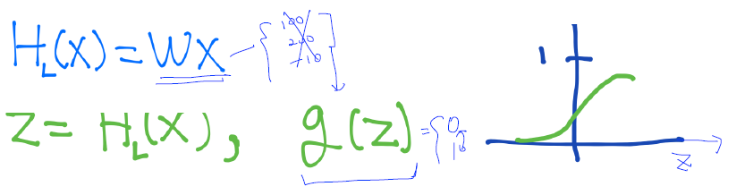 --> Z라고 놓고, g(z)라는 값이 있다면 실수 값을 압축을 하여 0~1 출력값으로 나왔으면 좋겠다!
