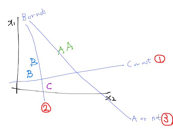 ex) 하나의 classfication을 만들어 (1)과 같은 hypo-plain을 찾아냈다.