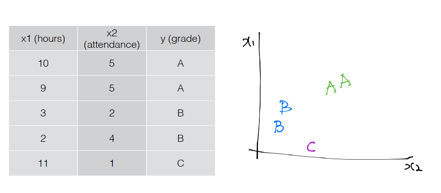 y값으로 학점을 준다고 하자. (A, B, C 3가지)