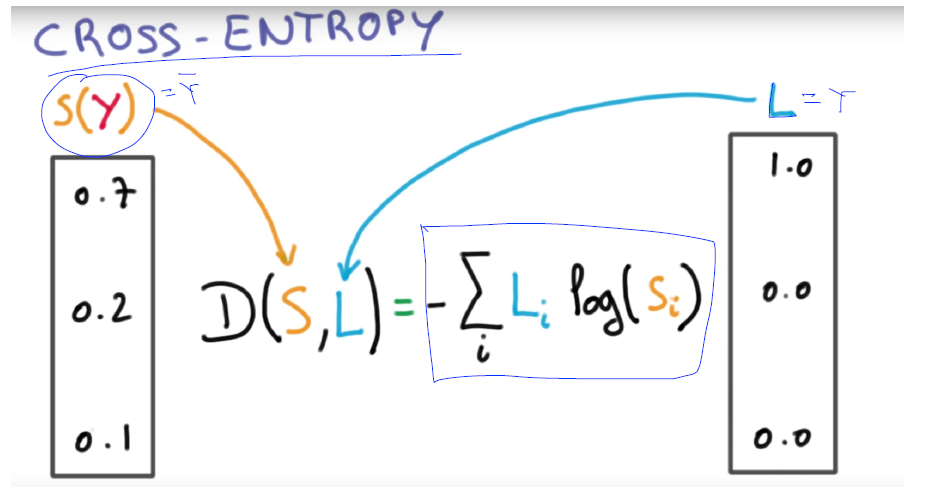 S(Y) (=Y의 hat. softmax 함수에 넣은 값.): 예측 값