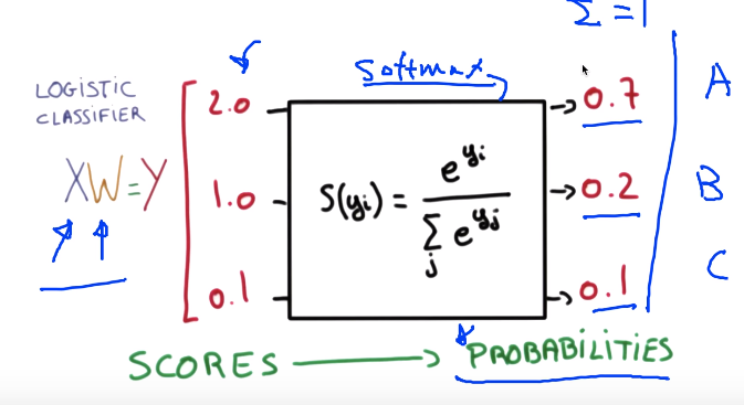 - 전체의 합은 1. 제일 큰 값이 최강자다. 이 과정을 tensorflow에서 자동으로 해주는 것: arg_max