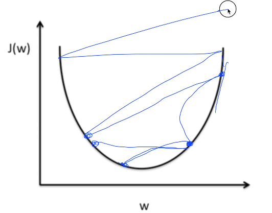 --> 발산이 된다면 값을 줄이고, 너무 늦게 움직이면 좀더 크게 하기
