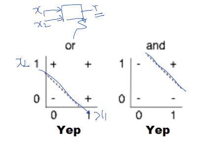 어느 정도의 성공: (Simple) AND/OR problem: linearly separable?