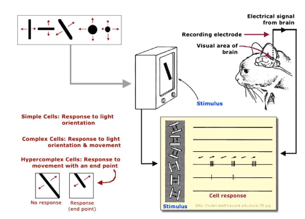 - 고양이를 가지고 그림을 보게한 후 시신경의 동작을 확인