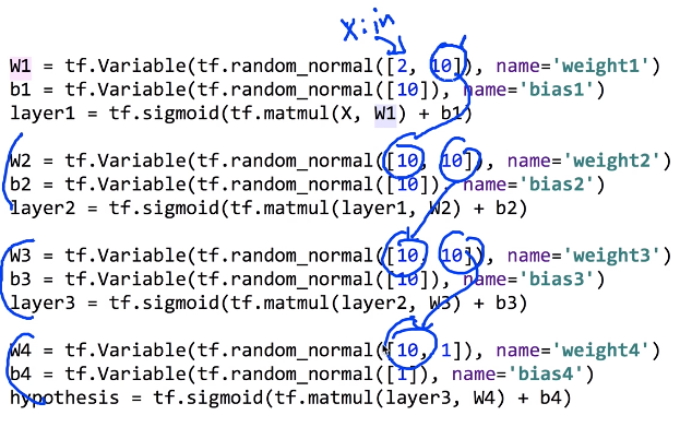 결론) XOR 문제가 logistic regression으로는 잘 되지 않았는데, NN을 이용하니 잘 학습되었다.