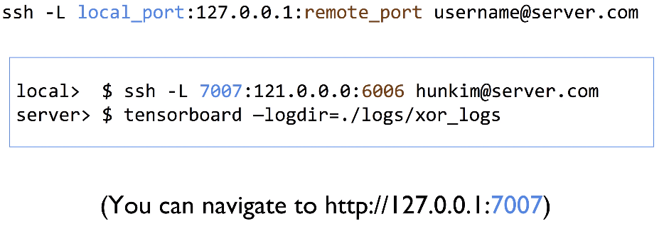 - ssh을 이용하여 port forwarding 기법을 이용하여 이렇게 사용
