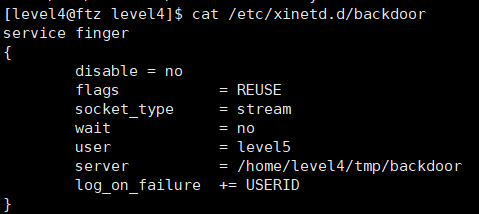 - server = /home/level4/tmp/backdoor: finger 서비스를 이용하여 이 파일이 실행된다는 것!