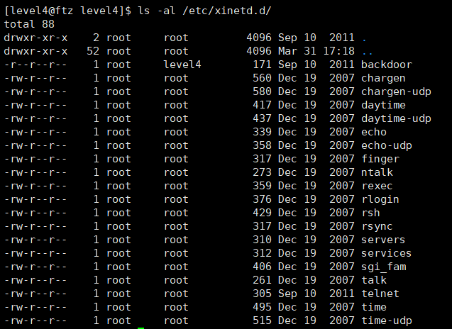 /etc/xinetd.d/에 있는 백도어 >> 앞 level의 로컬 백도어와는 다른,