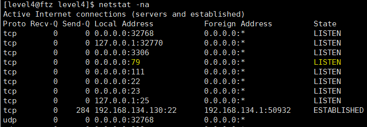 : FTZ 서버에 79/tcp 포트가 LISTEN으로 나타나야 한다는 뜻