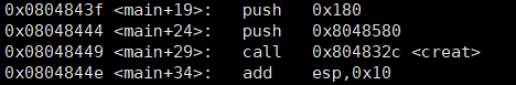 0x180을 stack에 올린 후, creat("/tmp/level5.tmp", 0x180) 호출
