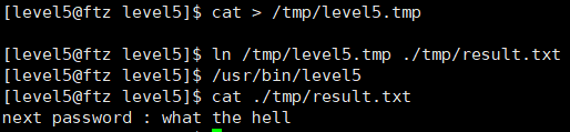 2. /tmp/level5.tmp에 /tmp/result.txt라는 하드링크를 걸어준다.