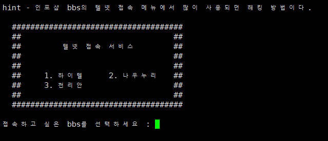 hint - 창에서 무작정 Enter키를 눌렀더니, 다음과 같은 화면이 나왔다.