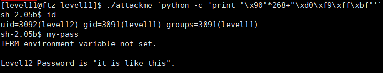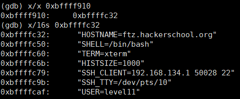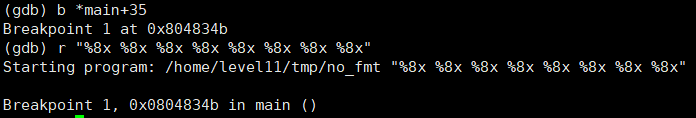 포맷스트링 취약점을 가진 프로세스가 0x08041110 주소를 통해 실행하려는 순간 셸코드가 실행되면서 셸이 떨어지게 된다.
