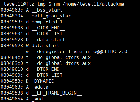 - nm 명령어: 바이너리에 포함돼 있는 오브젝트의 심볼 목록을 볼 수 있음