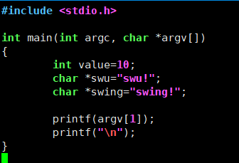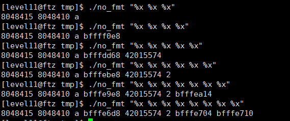 - 위 소스코드에서는 포맷 스트링을 사용하지 않고 printf(argv[1])만 했는데도 포맷 스트링을 사용한 경우와 같이 나온다.