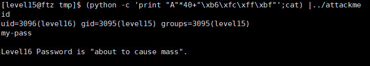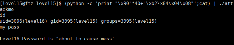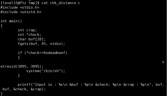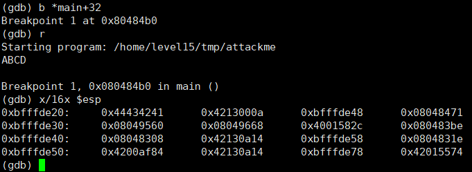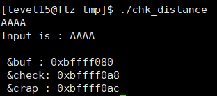 - lev14와 다른 점: check 포인터가 0xdeadbeef 문자열을 가리켜야 한다.