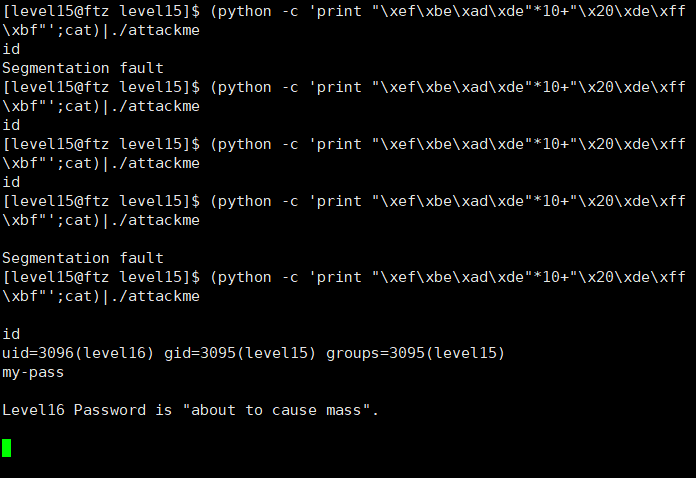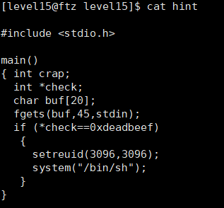- lev14: 단순히 check 정수 변수에 0xdeadbeef 값만 입력 해주는 것