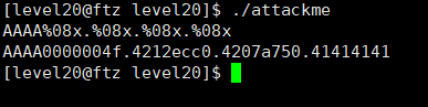 * printf("AAAA%08x.%08x.%08x.%08x")가 포맷스트링이 있는 부분